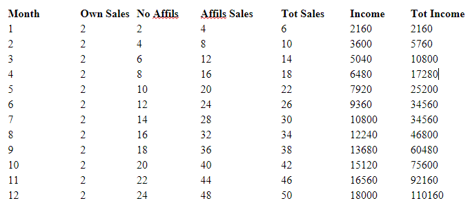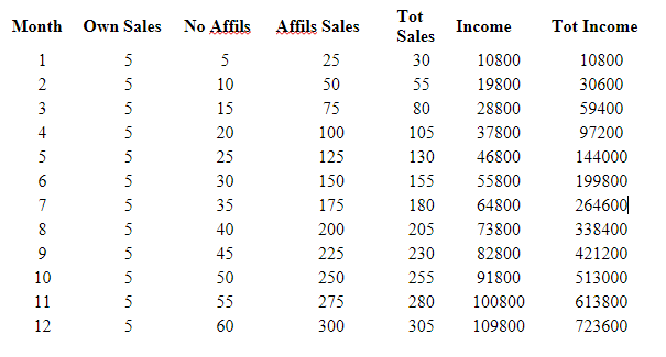 As you can see, by just making 5 sales per month and your affiliates duplicating your efforts in your first year you can make twice the amount than selling 30 sales per month, which would only be reached by one in every one thousand, if that.